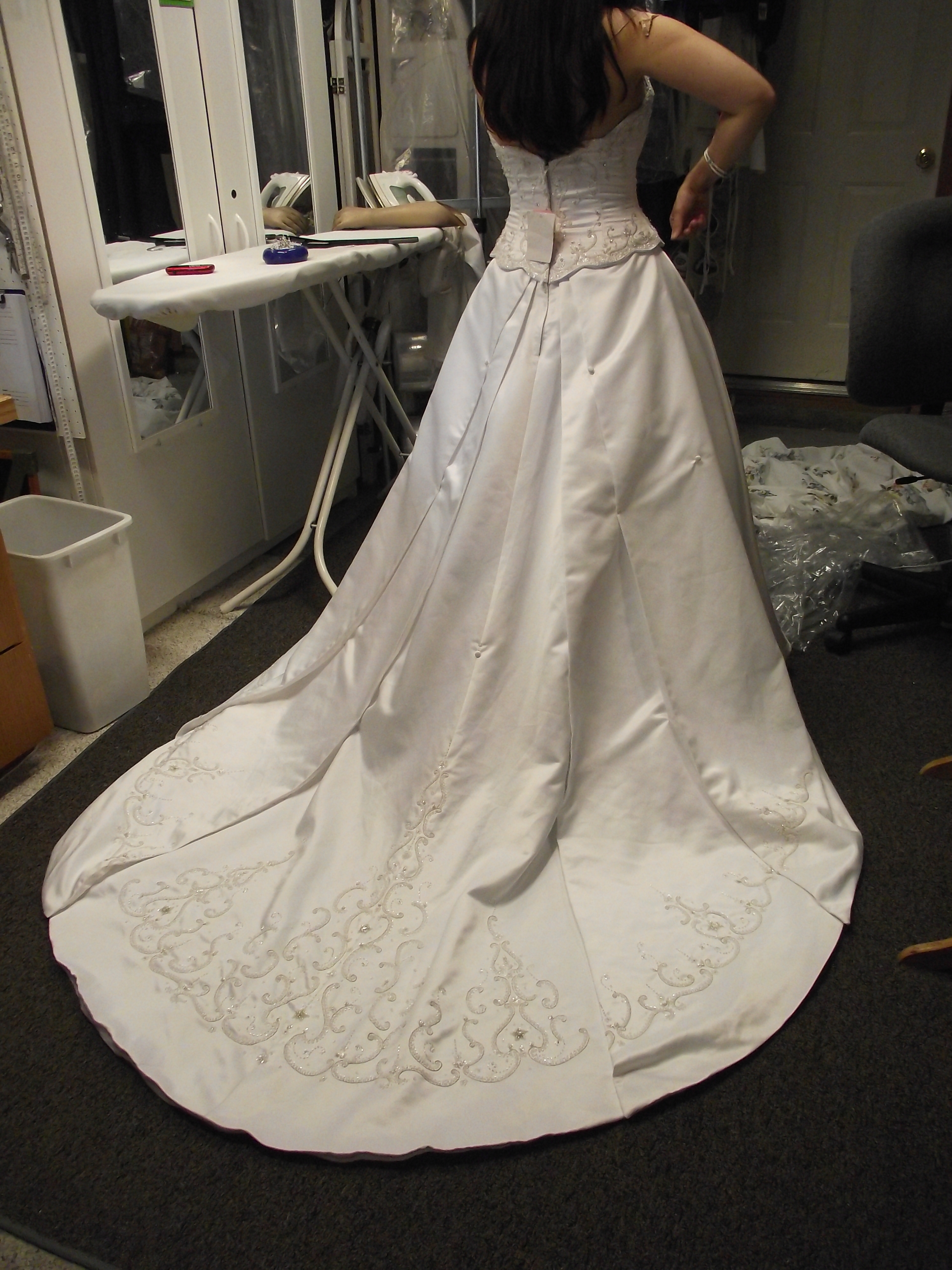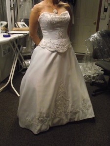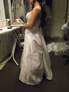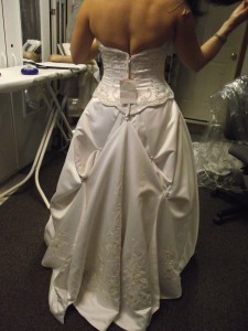 August 14, 2011 by colleen Wedding Gown 8 This wedding gown was purched by the bride and it was several sizes too large. I did a complete over all remake of the gown by taking it apart and cutting the whole dress down 8.5″. Share this:EmailFacebookTwitterGoogle