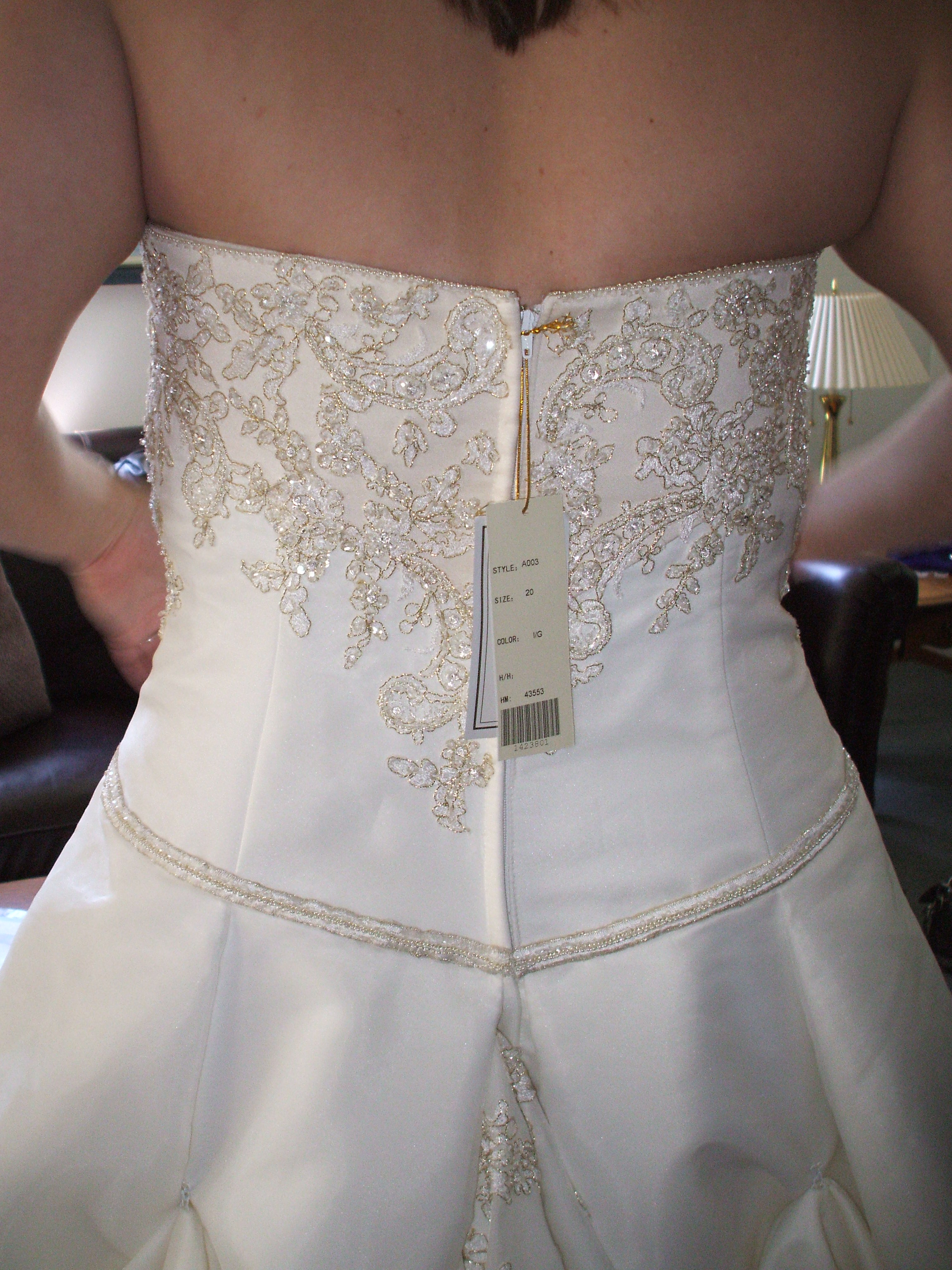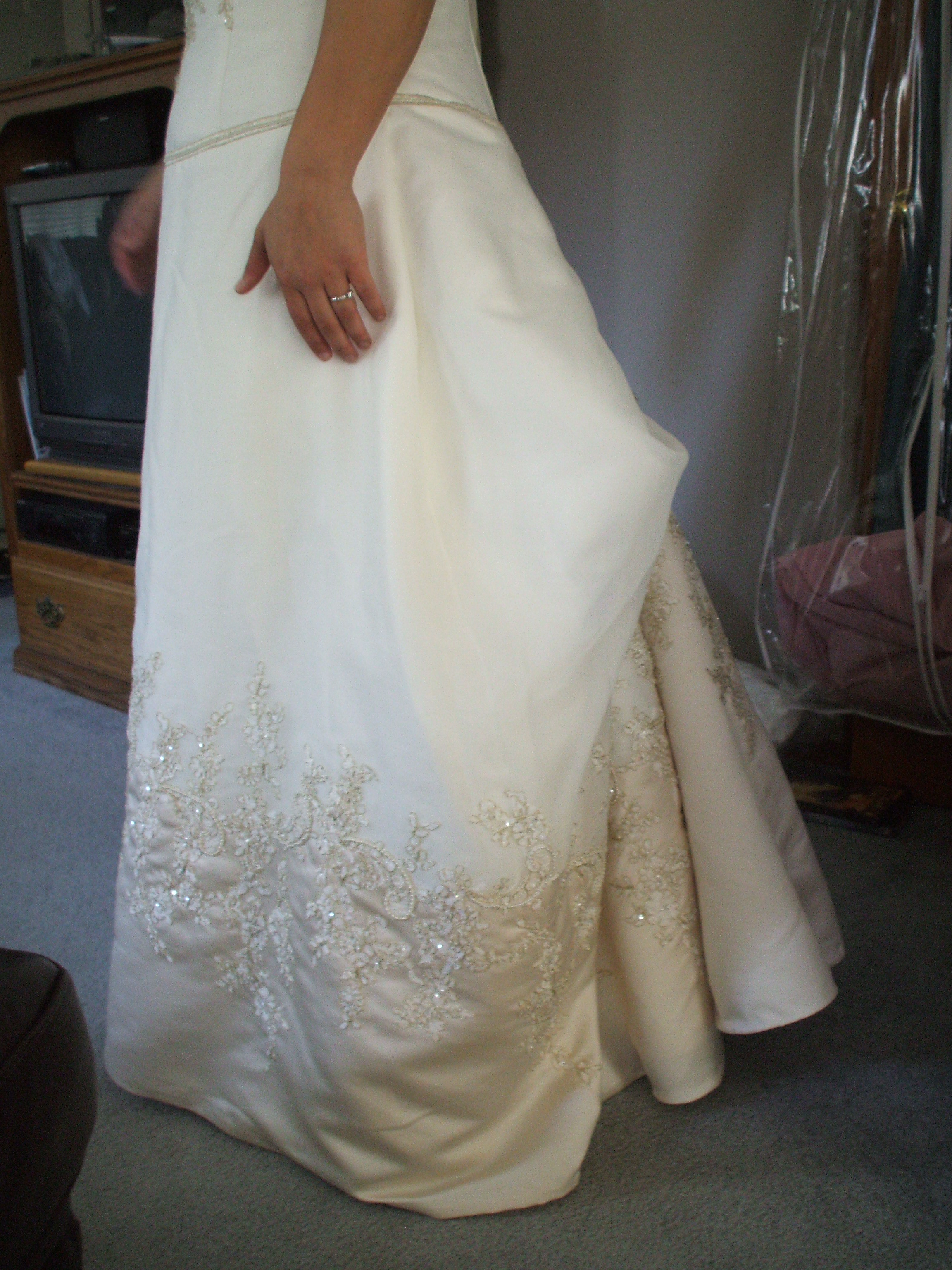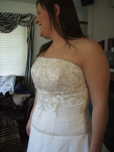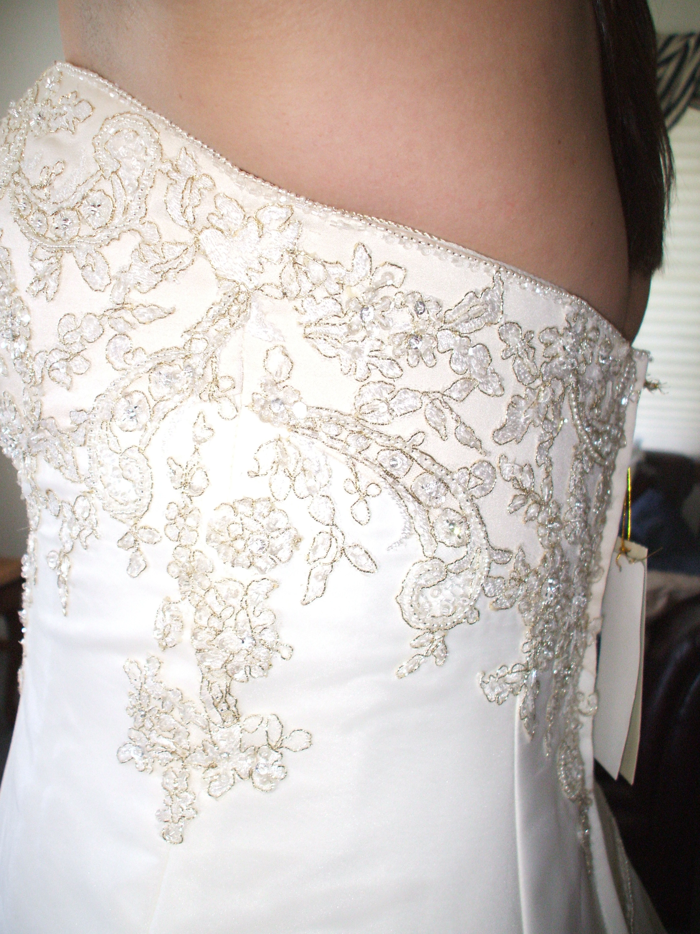 January 1, 2006 by colleen Wedding Gown 9 I shortened them hem, took the bodice sides in and bustle. Share this:EmailFacebookTwitterGoogle